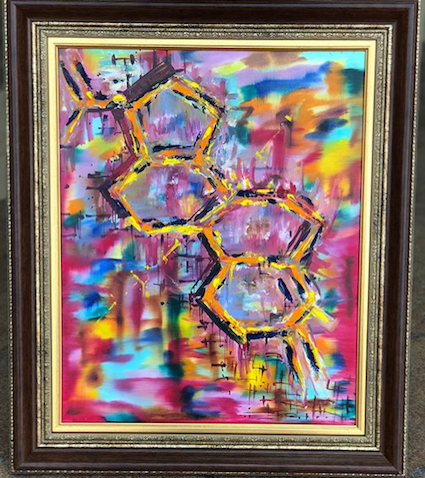 На этой удивительной картине изображена молекула прогестерона, одного из главных женских гормонов. Автор картины доктор-эндокринолог Магеря Илья Юрьевич. Вот, что может нарисовать подсознание специалиста, что картина "работает" потом на здоровье пациентов.