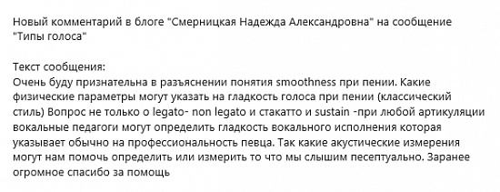 В моем блоге, поступил вопрос о так называемом понятии «Smoothness» , при пении. Можно ли получить его объективную оценку. Я решила посветить этому замечательному вопросу небольшую статью.