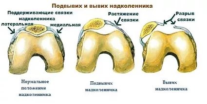 Наличие дисплазии различной степени выраженности ведет к тому, что движения надколенника при сгибании и разгибании в коленном суставе происходят с тенденцией к его латеральному смещению. При дополнительном травматическом воздействии это приводит к возникновению полноценного вывиха.