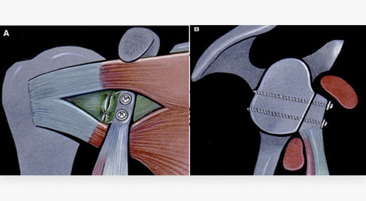 Операция Латерже – это передняя стабилизация сустава с использованием перемещенного клювовидного отростка лопатки на питающей сухожильно-мышечной ножке.