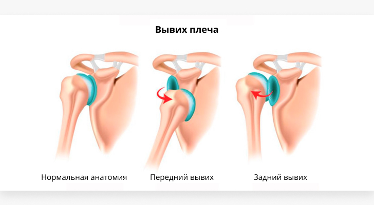 В отличие от первичного, повторный вывих может случиться и без травмы – при любых маховых движениях, заведении рук за голову, надевании одежды, причесывании, во сне и т. д. Привычный вывих может быть вызван осложнением травматического переднего вывиха: из-за неполноценности, отсутствия иммобилизации после вправления или при ранней физической нагрузке.