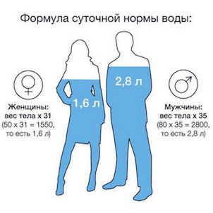 30 мл жидкости на кг веса в сутки. У мужчин может быть 35 мл/кг/сутки. Но? .....
