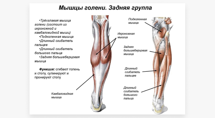 С помощью ахиллова сухожилия трехглавая мышца голени передает усилие на пяточную кость, которая в свою очередь, передавая его на стопу, обеспечивает ходьбу, бег, удержание вертикального положения. Относится к антигравитационным мышцам, как и мышцы таза и позвоночника. В них преобладают медленные (белые) мышечные волокна, которые не способны на быстрые и точные движения, но имеют большую выносливость в сравнении с быстрыми (красными) волокнами.