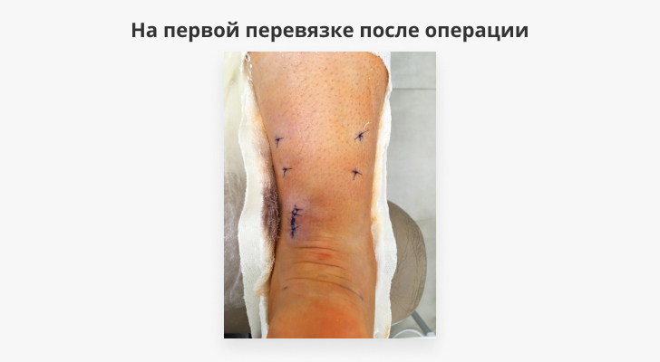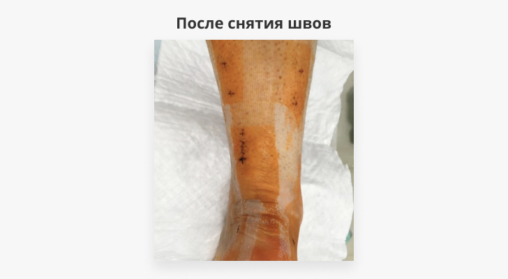 Разный уровень разреза кожи и паратенона с использованием техники «скользящего окна» позволяет избежать грубого стягивающего рубца, дает лучший косметический результат и возможность вариабельного расположения послеоперационного рубца в зависимости от используемой пациентом обуви.