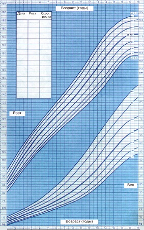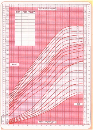Очень важный ростовой показатель – скорость роста, то есть темпы роста в год! Для этого показателя есть свои таблицы и для мальчиков и для девочек отдельно. При дефиците гормона роста скорость роста менее 3 см в год или прироста нет совсем.