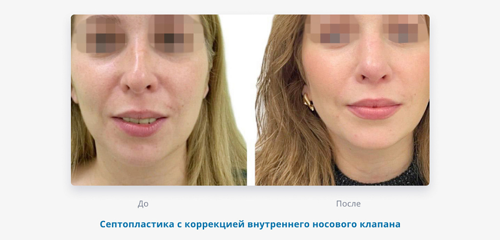 Септопластика с коррекцией клапанов носа устраняет функциональные нарушения, укрепляет ослабленные структуры и корректирует деформации, благодаря чему пациент получает сразу два эффекта: здоровый вдох и эстетически аккуратный профиль.