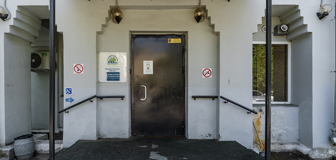 Информация: Есть внешний пандус у входа. Кабинеты клиники находятся на 2-х этажах, есть дополнительные переходы и ступеньки.