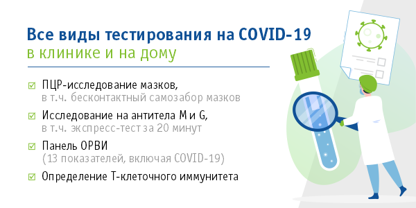 ** Включает стоимость исследования и забора мазков на дому в будний день, в пределах КАД. При организации услуги в выходной день и/или за пределы КАД применяются повышающие коэффициенты, в этом случае стоимость услуги уточняйте у координатора.
