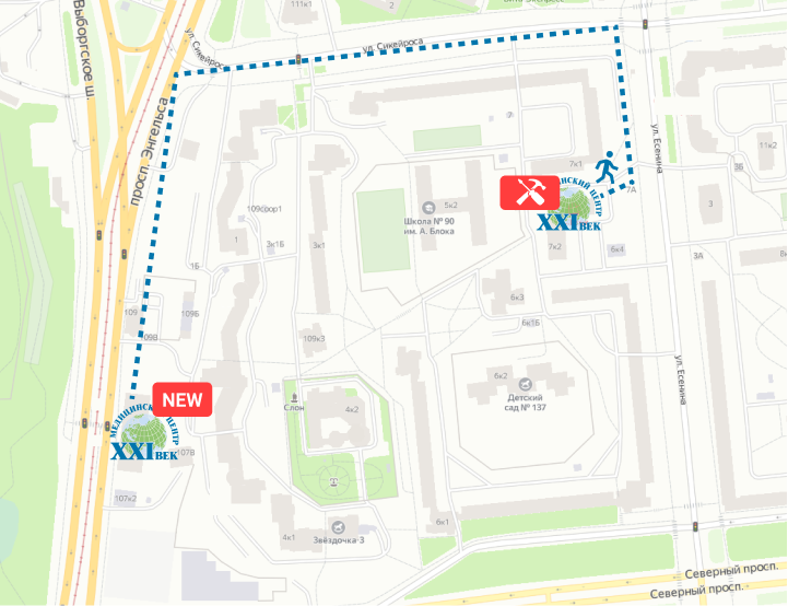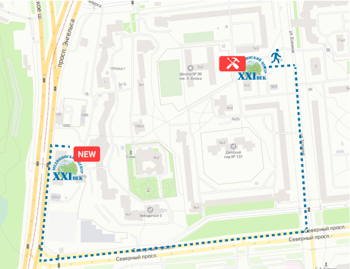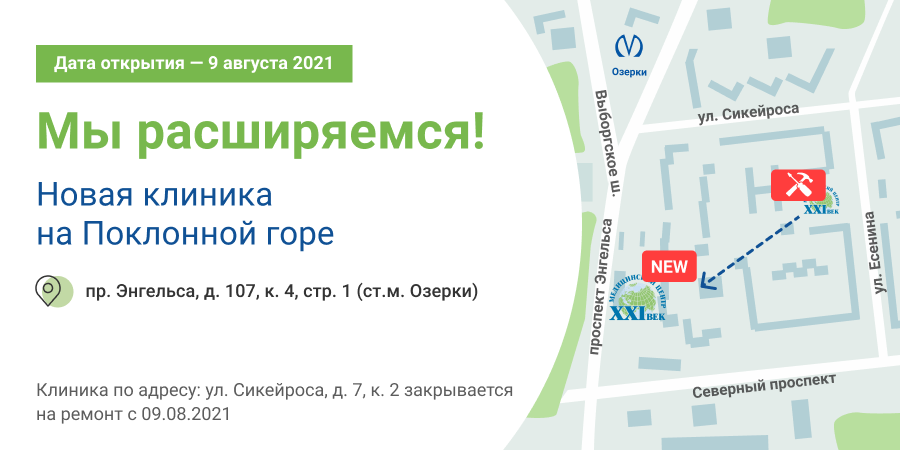 Новая клиника располагается по адресу: пр. Энгельса, д. 107, к. 4, стр. 1.