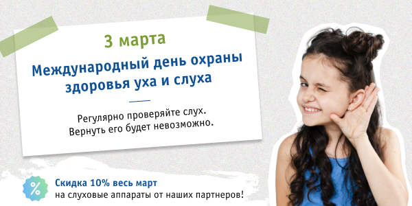 Напоминаем! Весь март дарим карты со скидкой 10% на слуховые аппараты от наших партнеров. Получить карту можно у администратора любой из наших клиник. Количество карт ограничено.