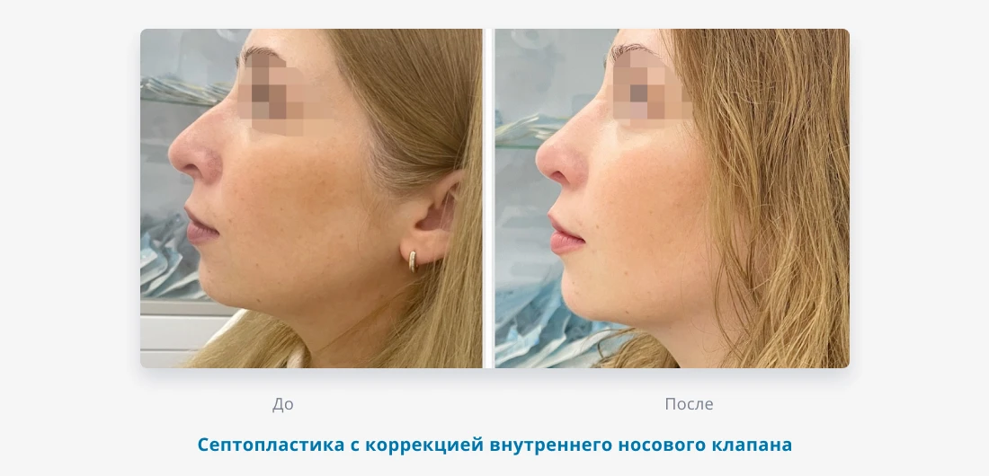 Но бывают ситуации, когда проблема с дыханием связана не только с перегородкой. Например, если нос заметно смещен в сторону, кончик носа опущен или визуально «уехал» в бок. Часто причиной становится деформация внутреннего или наружного носового клапана – зоны, через которую проходит воздух. Такое состояние нередко возникает после травм или при врожденных особенностях строения носа. В этих случаях одной септопластики может быть недостаточно.