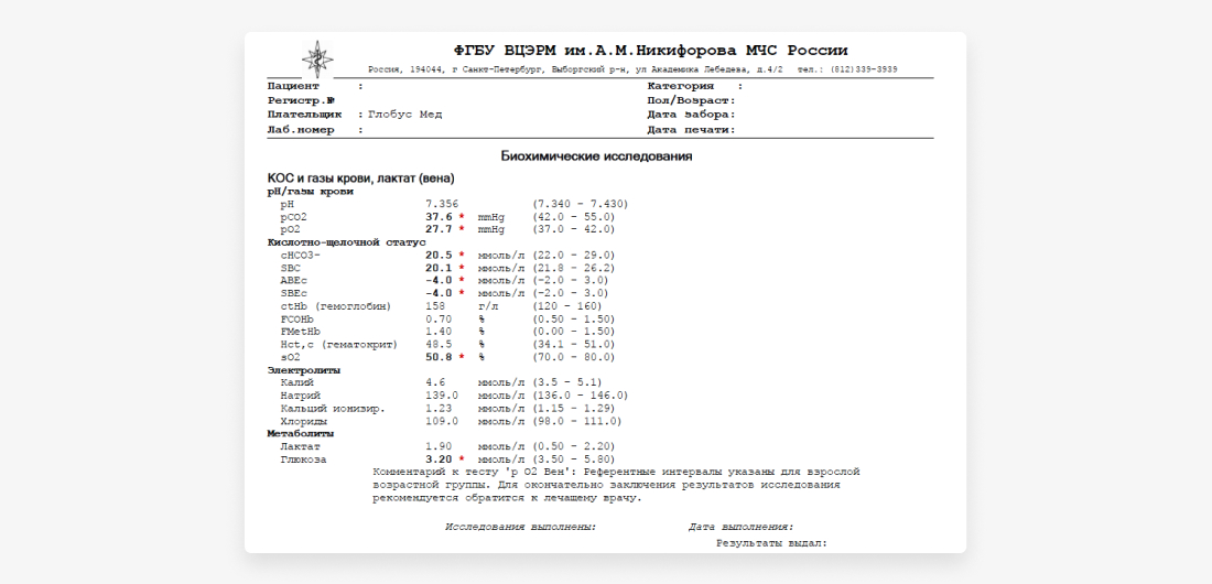 Оперативность. Мы предоставляем результаты газового анализа крови в тот же или на следующий день после взятия биоматериала.
