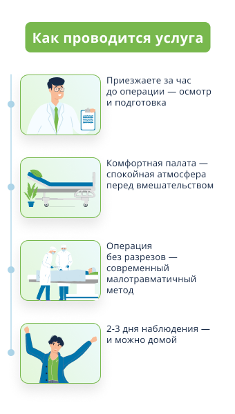 • Индивидуальный подход: при выборе тактики оперативного лечения мы учитываем особенности здоровья пациента.